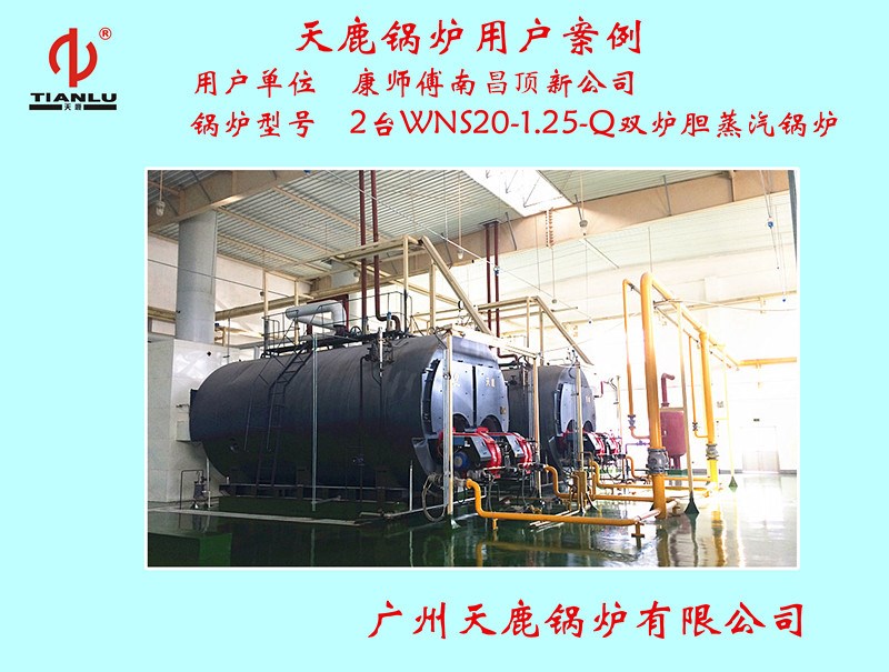 > 康師傅南唱頂新公司2臺WNS20-1.25-Q雙爐膽蒸汽鍋爐